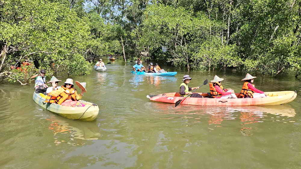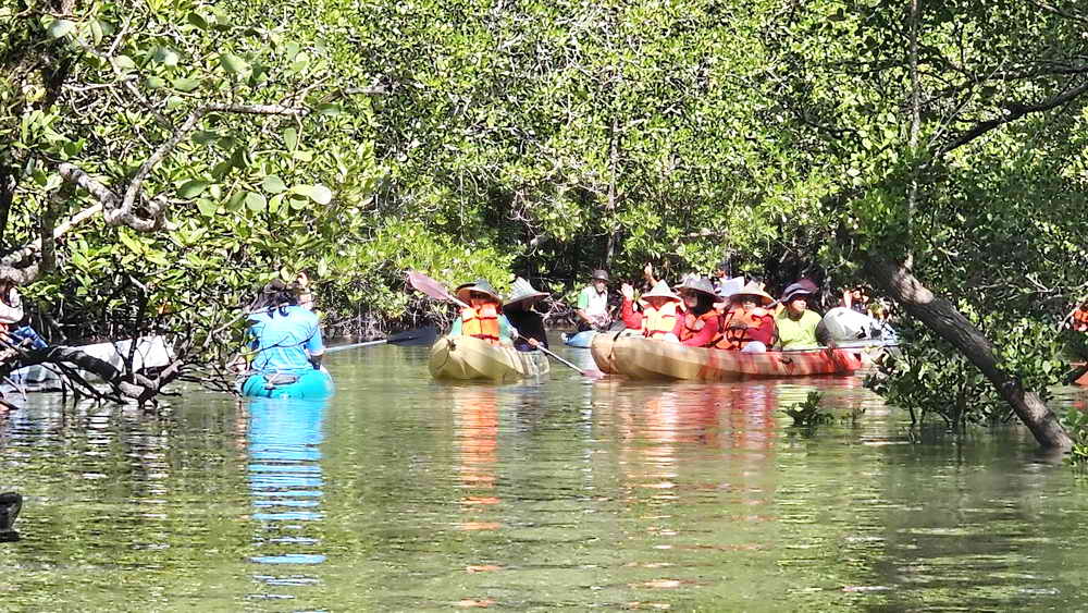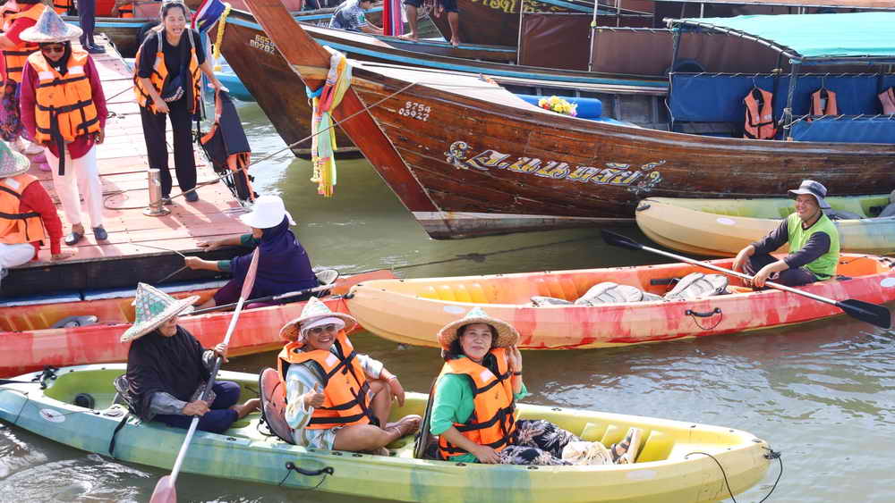 ก่อนเดินทางต่อไปยังชุมชนท่องเที่ยวบ้านสามช่องเหนือ ซึ่งตั้งอยู่กลางน้ำของอ่าวพังงา หมู่ 9 ต.กะไหล อ.ตะกั่วทุ่ง จ.พังงา มีกิจกรรมให้นักท่องเที่ยวเลือกหลายรูปแบบ ซึ่งในส่วนของคณะฯ ได้ล่องเรือแคนนู ดูปูแสม ศึกษาระบบนิเวศป่าชายเลน ชมอุโมงค์ป่าโกงกาง ร่วมคืนความสมบูรณ์ให้ท้องทะเลด้วยการปล่อยปูม้า ต่อด้วยการขึ้นฝั่งไปชุมชน ฟังบรรยายสรุปเกี่ยวกับชุมชน