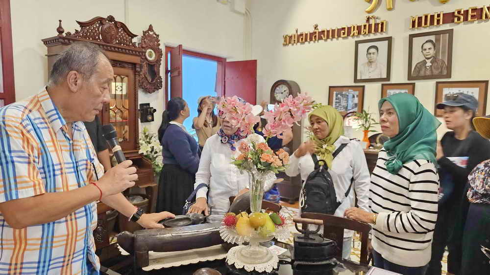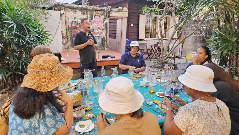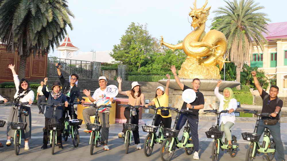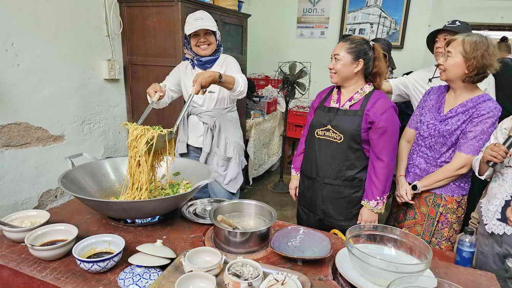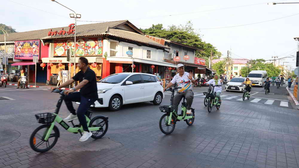 จากนั้นไปเยี่ยมชมภายในตัวอาคารไชน่าอินน์ ก่อนเดินชมย่านเมืองเก่าภูเก็ต โดยรถบัส EV และปั่นจักรยานไฟฟ้าชมเมือง เพื่อเป็นทางเลือกสำหรับนักท่องเที่ยว เพื่อเป็นส่วนหนึ่งในการช่วยลดคาร์บอนและลดมลพิษ จากนั้นชมการสาธิตผัดหมี่ฮกเกี้ยนภูเก็ต การทำขนมอั่งกู้ และขนมอาโป้ง ขนมพื้นเมืองภูเก็ต ณ บ้านเลขที่ 92 พร้อมรับประทานก่อนจะแยกย้ายเดินทางกลับภูมิลำเนาโดยสวัสดิภาพ