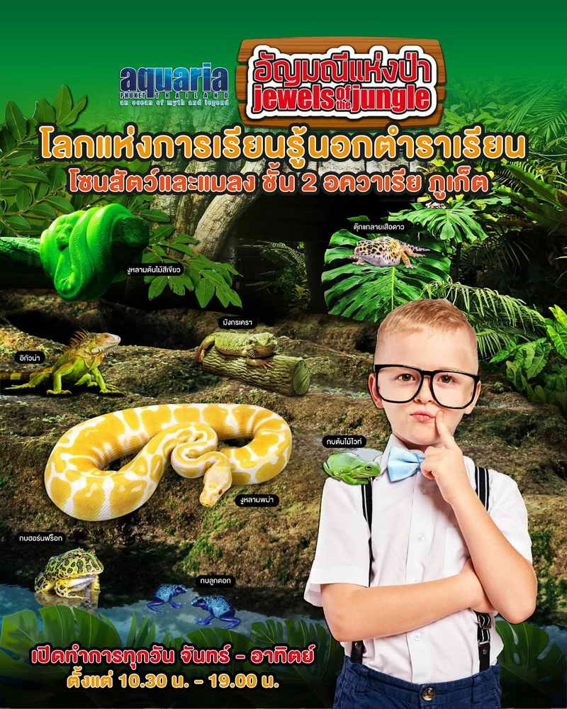 มาพบปะและปฏิสัมพันธ์กับสัตว์เลื้อยคลานหลากหลายสายพันธุ์ได้ที่ โซน The Jewels of the Jungle (ชั้น 2) อควาเรีย ภูเก็ต ชั้น บี 1 เซ็นทรัล ภูเก็ต ฟลอเรสต้า