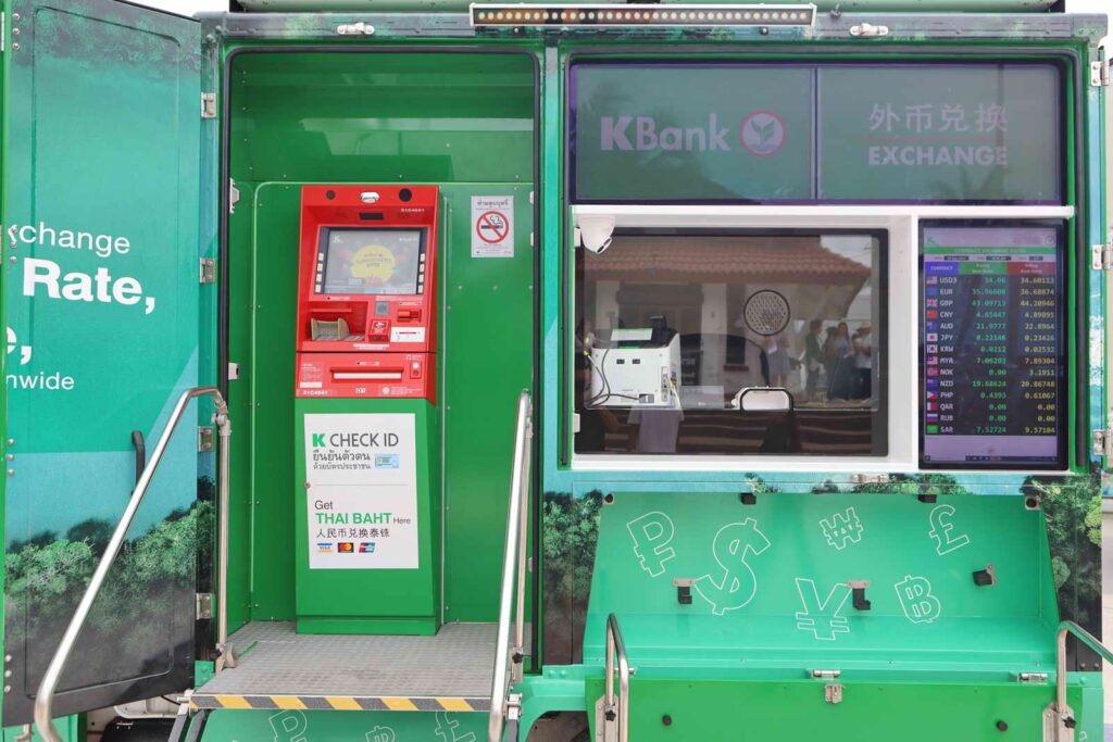 นายบุญเติบ จีรภัทร์ ผู้ช่วยผู้จัดการใหญ่ ธนาคารกสิกรไทย ได้กล่าวว่า รถ FX EV Car หรือรถยนต์พลังงานไฟฟ้า เป็นรถยนต์ที่รับแลกเปลี่ยนเงินตราต่างประเทศ โดยมีอัตราแลกเปลี่ยนตามที่ธนาคารกำหนดในแต่ละวัน นอกจากนี้ยังมีเครื่องถอนเงินสด หรือ เอทีเอ็ม ซึ่งชาวไทยและชาวต่างชาติ สามารถเข้ามาใช้บริการในการถอนเงินสดได้จากเครื่อง