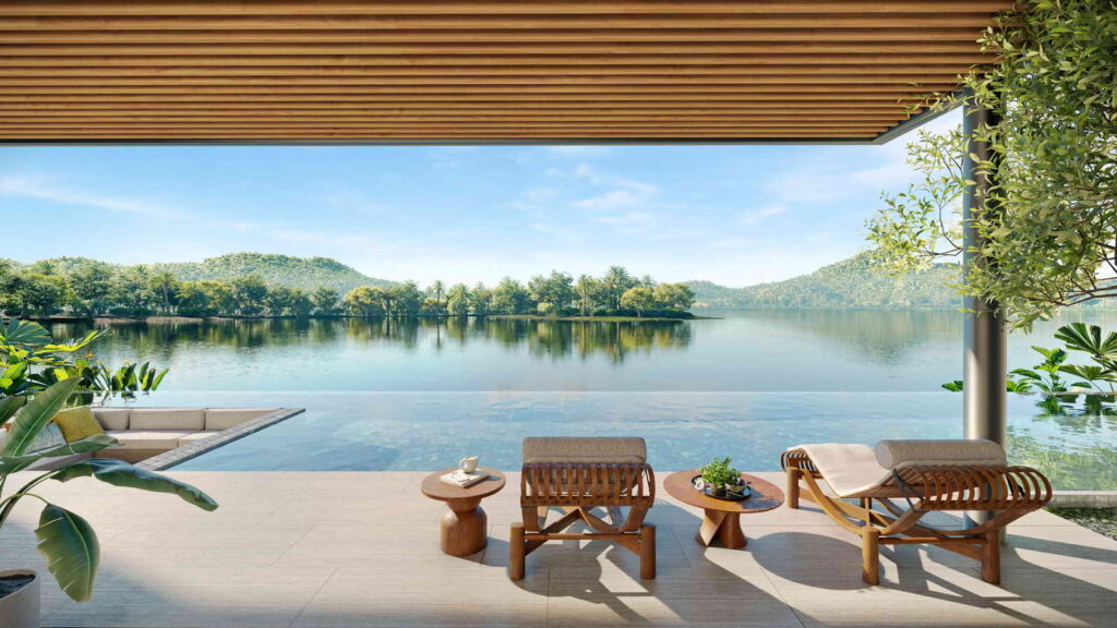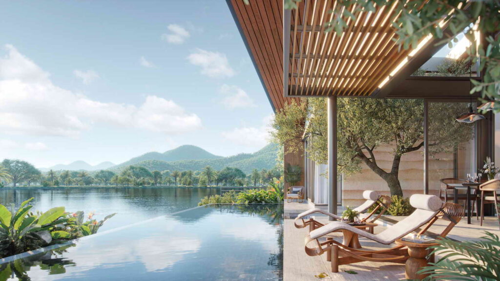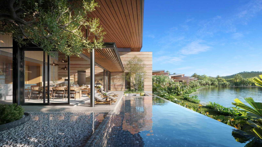 “SERRANA LAKEFRONT POOL VILLAS PHUKET” มีความโดดเด่นด้วยการออกแบบด้านสถาปัตยกรรมที่สร้างให้ทุกยูนิตสำหรับการอยู่อาศัย สามารถสัมผัสกับความเป็นธรรมชาติของทัศนียภาพของทะเลสาบขนาดใหญ่ และธรรมชาติโดยรอบที่สวยงามโดยรอบ ตั้งแต่ยูนิตไฮไลท์แบบชั้นเดียวที่ติดริมทะเลสาบ ไปจนถึงยูนิตที่อยู่ถัดไปยกระดับเป็นอาคารสองชั้น นอกจากนี้ ยังดีไซน์สถาปัตยกรรมที่เชื่อมโยงธรรมชาติอันโดดเด่นสู่ตัวอาคาร ด้วยการออกแบบให้มีการเชื่อมต่อทั้งภายในและภายนอกอาคารด้วย “กำแพงชั้นดินอัด” หรือ “Rammed earth”
