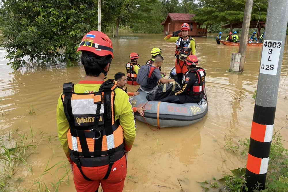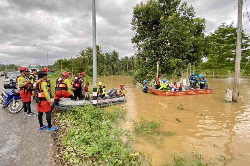 เจ้าหน้าที่มูลนิธิกุศลธรรมเข้าอพยพและช่วยเหลือชาวบ้านที่ชุมพร