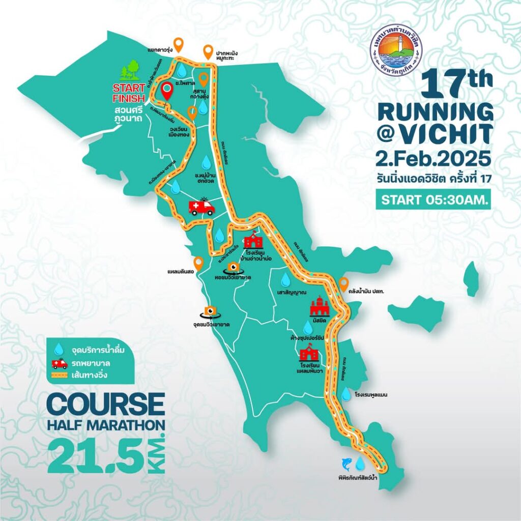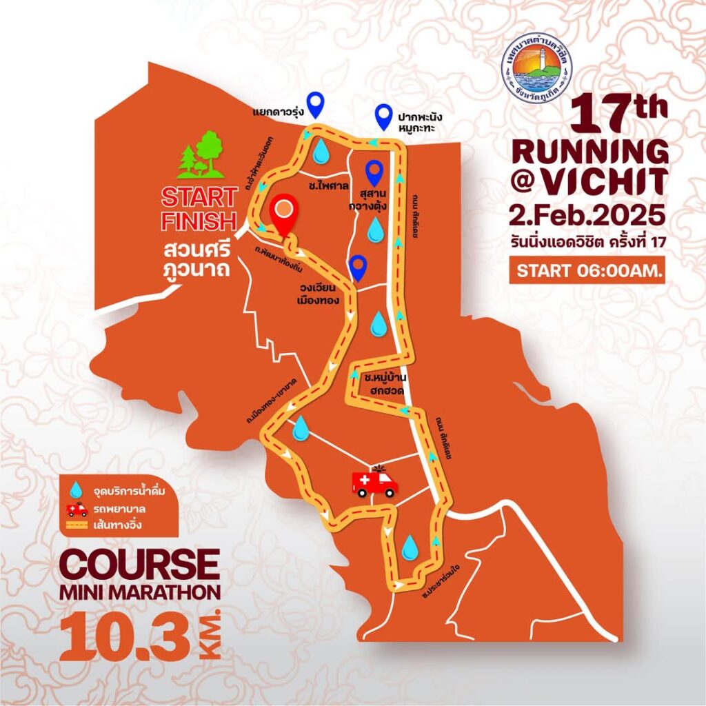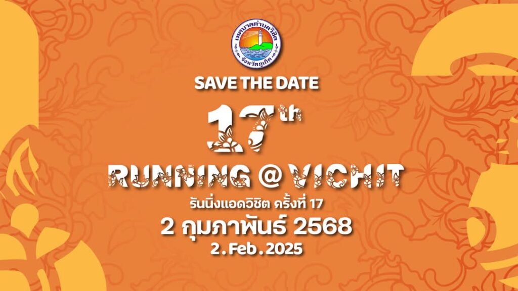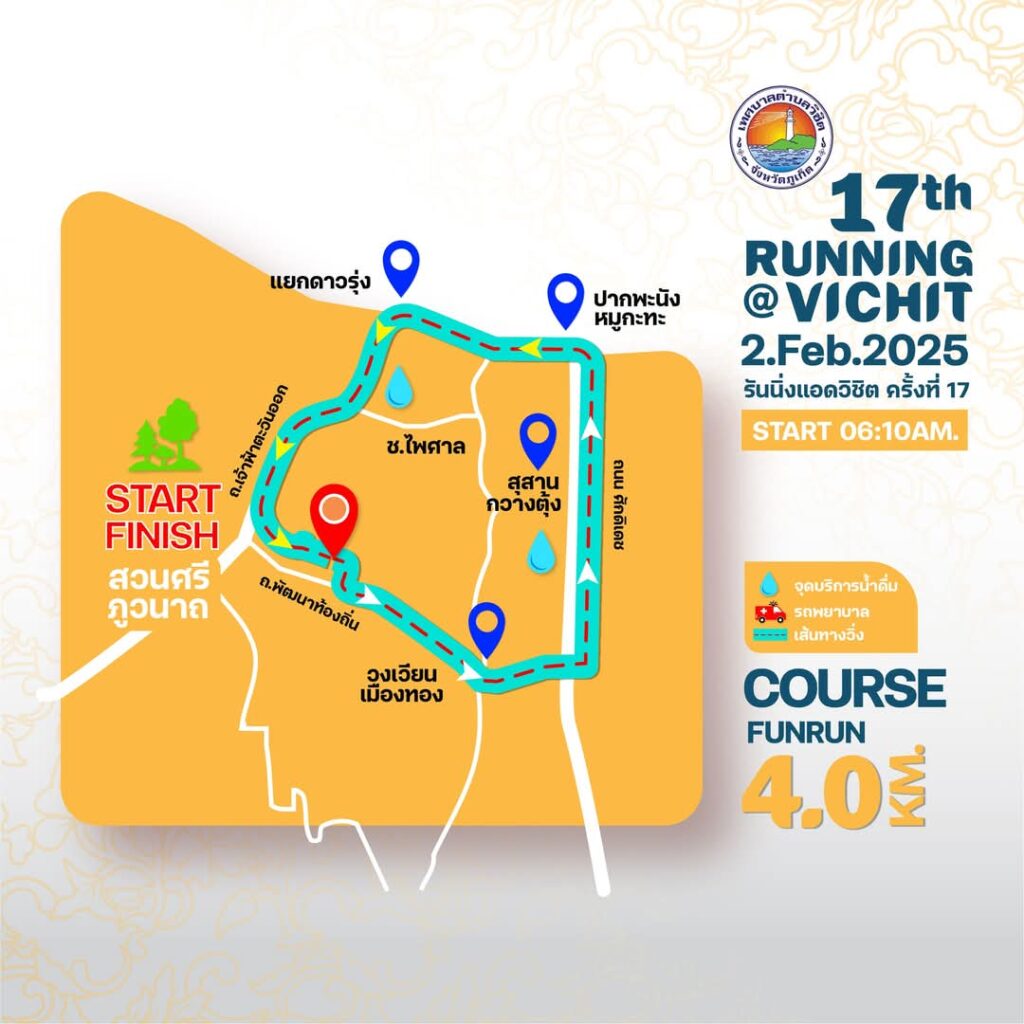 ด้วยทางเทศบาลตำบลวิชิตจะจัดการแข่งขัน รันนิ่งแอดวิชิต ครั้งที่ 17 (Running @ Vichit #17) วันที่ 2 กุมภาพันธ์ 2568 ณ สวนศรีภูวนาถ ภูเก็ต โดยแบ่งการแข่งขันออกเป็นประเภทต่างๆ ประกอบด้วย