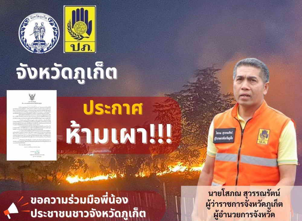 ทางจังหวัดภูเก็ต จึงได้ออกประกาศ ห้ามทำการเผาใดๆ ทั้งสิ้น ในช่วงฤดูแล้ง หากมีความจำเป็นต้องเผาเพื่อเตรียมพื้นที่ในการเกษตร ให้ขออนุญาตจากกำนัน หรือผู้ใหญ่บ้านในเขตปกครองพื้นที่นั้นๆ