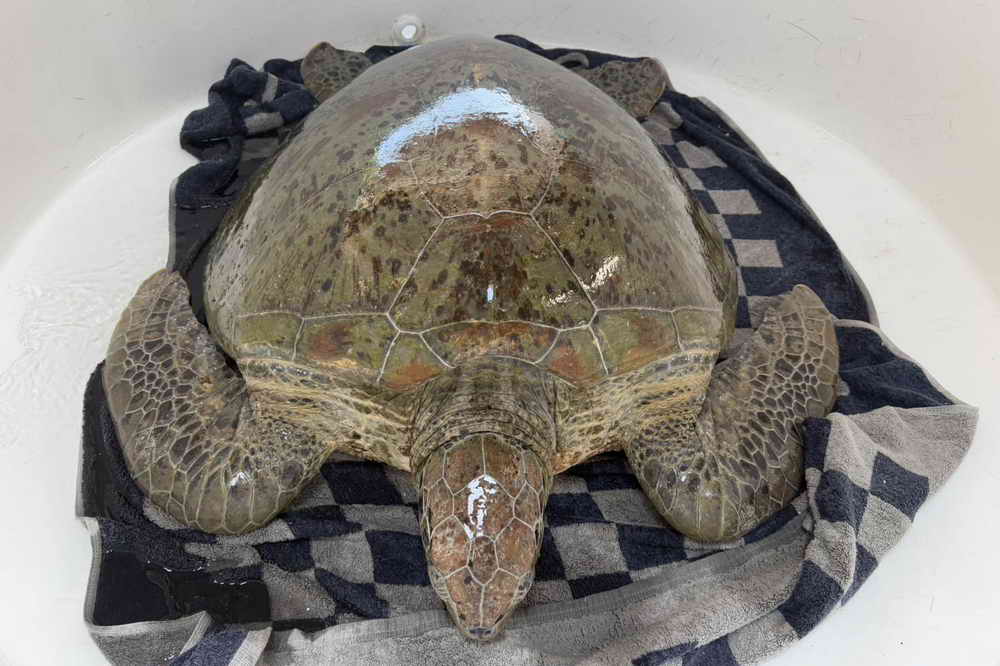 จากนั้นเจ้าหน้าก็ได้เดินทางไปยังสถานที่ได้รับแจ้ง จากการตรวจสอบพบเป็นเต่าตนุ (Chelonia mydas) เพศเมีย โตเต็มวัย ขนาดกระดองกว้าง 93.5 เซนติเมตร กระดองยาว 96 เซนติเมตร น้ำหนักประมาณ 77.4 กิโลกรัม ความสมบูรณ์ของร่างกายอยู่ในระดับค่อนข้างผอม (BCS 2/5) พบสาหร่ายปกคลุมกระดองหลัง ส่วนกระดองท้องกร่อนและหลุดร่อน สภาพร่างกายอ่อนแรง และมีเพรียงเกาะตามตัว