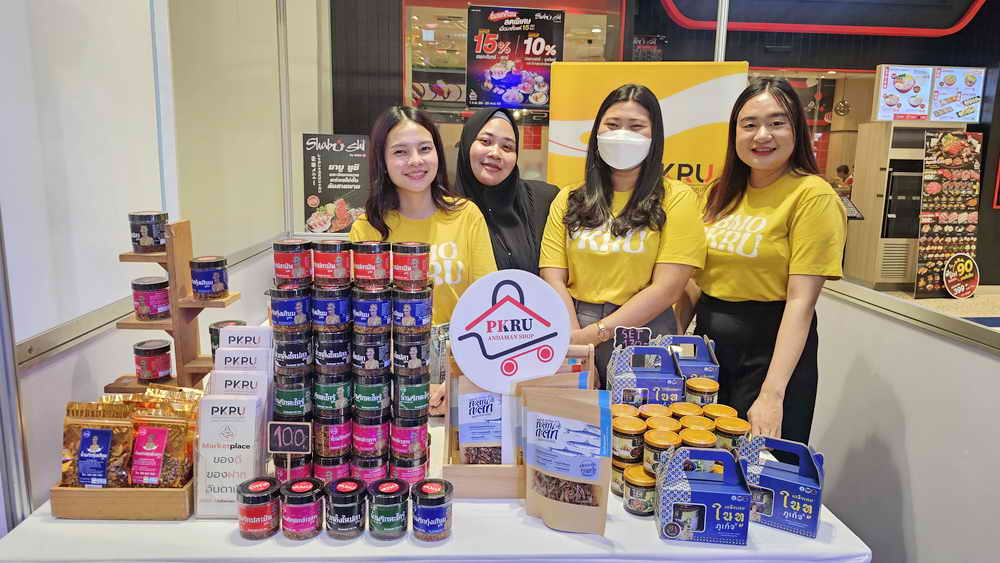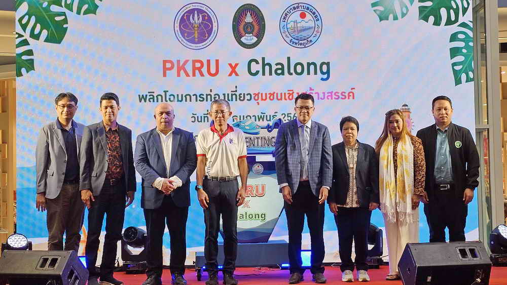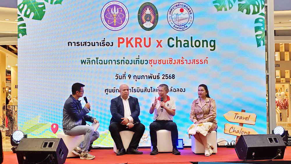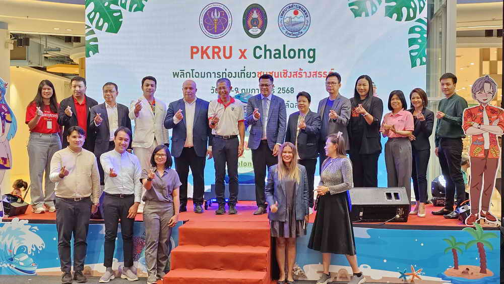 เมื่อวันที่ 9 กุมภาพันธ์ 2568 ที่ศูนย์การค้าโรบินสันไลฟ์สไตล์ สาขาฉลอง อำเภอเมือง จังหวัดภูเก็ต ผศ.ดร.หิรัญ ประสารการ อธิการบดีมหาวิทยาลัยราชภัฏภูเก็ต พร้อมด้วย ผศ.ดร.ดวงรัตน์ โกยกิจเจริญ รองอธิการบดีฝ่ายแผนงาน บริการวิชาการและวิจัย ร่วมกันเปิดงาน PKRU x Chalong พลิกโฉมการท่องเที่ยวชุมชนเชิงสร้างสรรค์ เพื่อประชาสัมพันธ์สื่อสารข้อมูลผลการดำเนินงานรอบใน 5 เดือนและช่องทางหนึ่งที่จะส่งเสริมกลไกทางการตลาดเพื่อจำหน่ายสินค้าและบริการเอกลักษณ์ท้องถิ่น ตำบลฉลอง