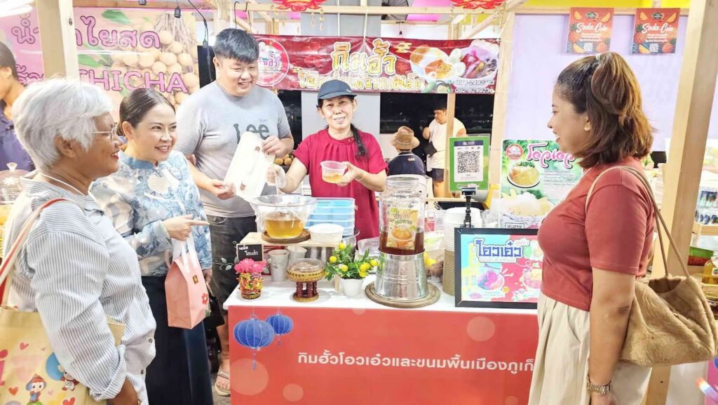 ภายในงานมีการจัดแสดงและจำหน่ายสินค้าหลากหลายประเภท ทั้งสินค้าอุปโภคบริโภค อาหารพื้นเมือง อาหารฮาลาล ผลิตภัณฑ์จากเกษตรแปรรูป สินค้า GI และนวัตกรรมสร้างสรรค์ อาทิ เครื่องหอมจากเปลือกสับปะรด ผ้ามัดย้อมจากดอกไม้ท้องถิ่น และของฝากที่สะท้อนอัตลักษณ์ของภูเก็ต พร้อมสินค้าราคาพิเศษ เช่น ไข่ไก่จากทวีภัณฑ์ภูเก็ต น้ำมันพืชรินทิพย์ และกิจกรรมส่งเสริมการขายตลอดทั้งวัน