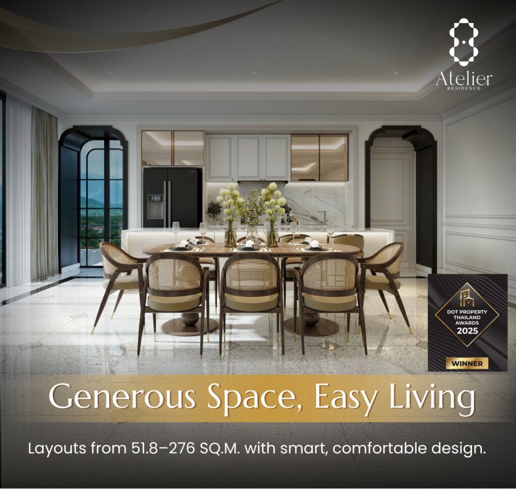 ภูเก็ต, ประเทศไทย – 23 สิงหาคม 2568 – บริษัท 88 Myspace Design สตูดิโอออกแบบชั้นนำระดับประเทศ สร้างชื่ออีกครั้งด้วยผลงานการออกแบบสุดหรูในโครงการ “8 Altelier Residence” ของบริษัท Glam Estate จำกัด ภายใต้การบริหารของ คุณดุษฏี นววงพรรณา กรรมการผู้จัดการ ซึ่งสามารถคว้ารางวัลอันทรงเกียรติจากงาน Dot Property Award 2025 ที่โรงแรมโฟร์ซีซั่นส์ กรุงเทพฯ โดยโครงการดังกล่าวได้รับรางวัลทั้งด้าน Best Condominium Development New Launch Phuket และ Best Condominium Development Interior Design Phuketความสำเร็จของโครงการ “8 Altelier Residence” ในครั้งนี้ เกิดขึ้นจากการทำงานร่วมกันอย่างใกล้ชิดระหว่าง Glam Estate และ 88 Myspace Design โดยมี คุณสุรพล ทองตำลึง และ คุณชัยวัฒน์ ตั้งสวามิภักดิ์ รับผิดชอบงานออกแบบสถาปัตยกรรมและการตกแต่งภายใน ที่ถ่ายทอดเอกลักษณ์ของการใช้ชีวิตเหนือระดับในทำเลศักยภาพย่าน “ป่าสัก ภูเก็ต” ได้อย่างลงตัว