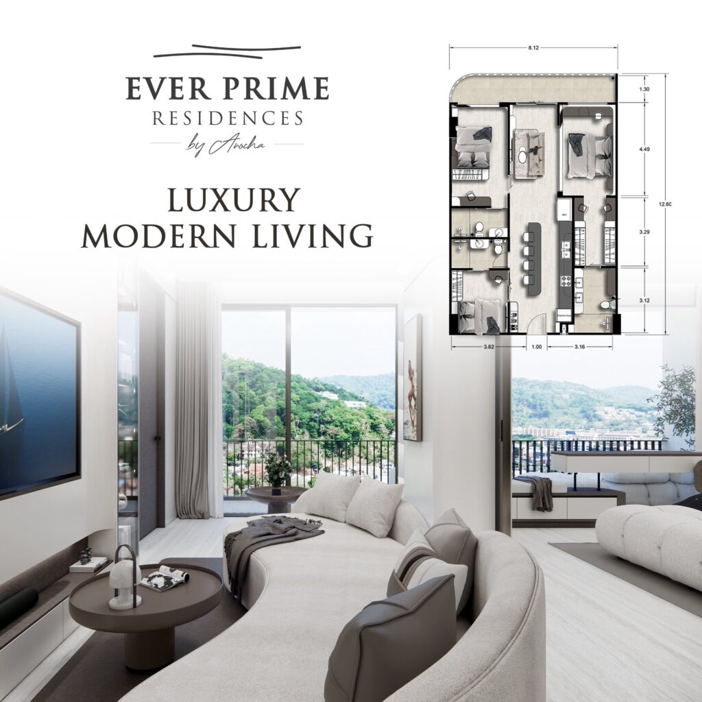 โครงการ “Ever Prime Residences” ตั้งอยู่บนถนนเส้นหลักกะรน ตรงข้ามแม็คโคร ครอบคลุมพื้นที่ 6 ไร่ ประกอบด้วย 4 อาคาร รวม 449 ยูนิต มีแบบห้องให้เลือกตั้งแต่ 2–4 ห้องนอน ราคาเริ่มต้นที่ 5 ล้านบาท และสูงสุดราว 25 ล้านบาท โดยมาพร้อมสิ่งอำนวยความสะดวกครบวงจร เช่น สระว่ายน้ำ ห้องซาวน์น่า ห้องสมุด Co-working space ห้องเล่นเกมส์ รวมถึงซูเปอร์มาร์เก็ต 24 ชั่วโมง และระบบรักษาความปลอดภัยตลอด 24 ชม.