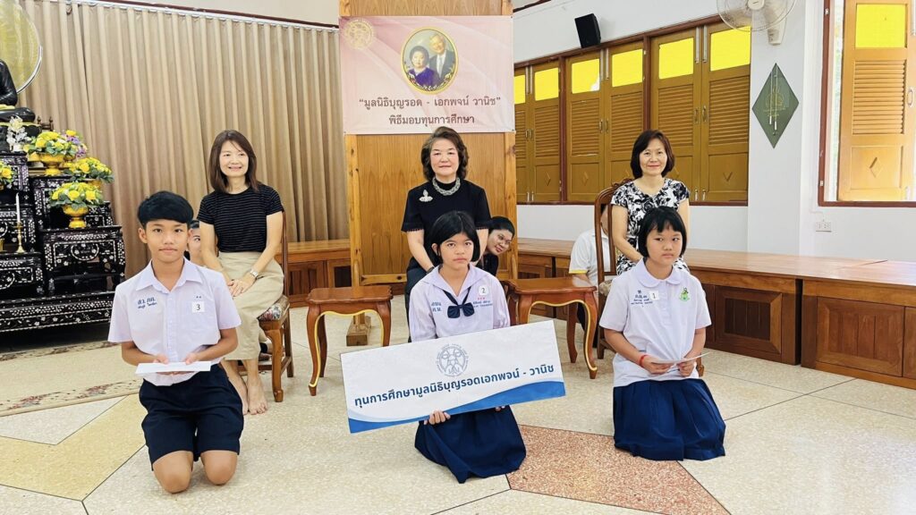วันที่ 3 พฤศจิกายน 2568 ณ ศาลาอเนกประสงค์ วัดท่าเรือ อำเภอถลาง จังหวัดภูเก็ต มูลนิธิบุญรอด–เอกพจน์ วานิช จัดพิธีมอบทุนการศึกษาแก่นักเรียนและนักศึกษา ครั้งที่ 29 ประจำปี 2568 โดยมี นางอัญชลี วานิช เทพบุตร ประธานมูลนิธิบุญรอด–เอกพจน์ วานิช เป็นประธานในพิธีมอบทุน พร้อมด้วยครอบครัววานิช คณาจารย์ ผู้บริหารสถานศึกษา ผู้ปกครอง นักเรียน และนักศึกษาเข้าร่วมในพิธีอย่างอบอุ่นและเปี่ยมด้วยรอยยิ้ม