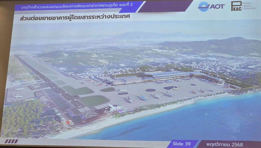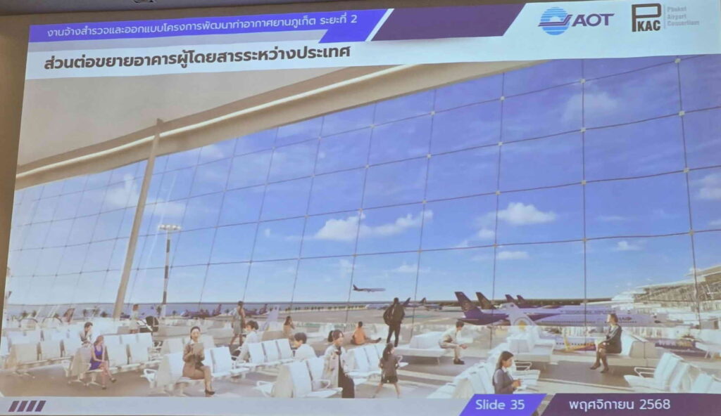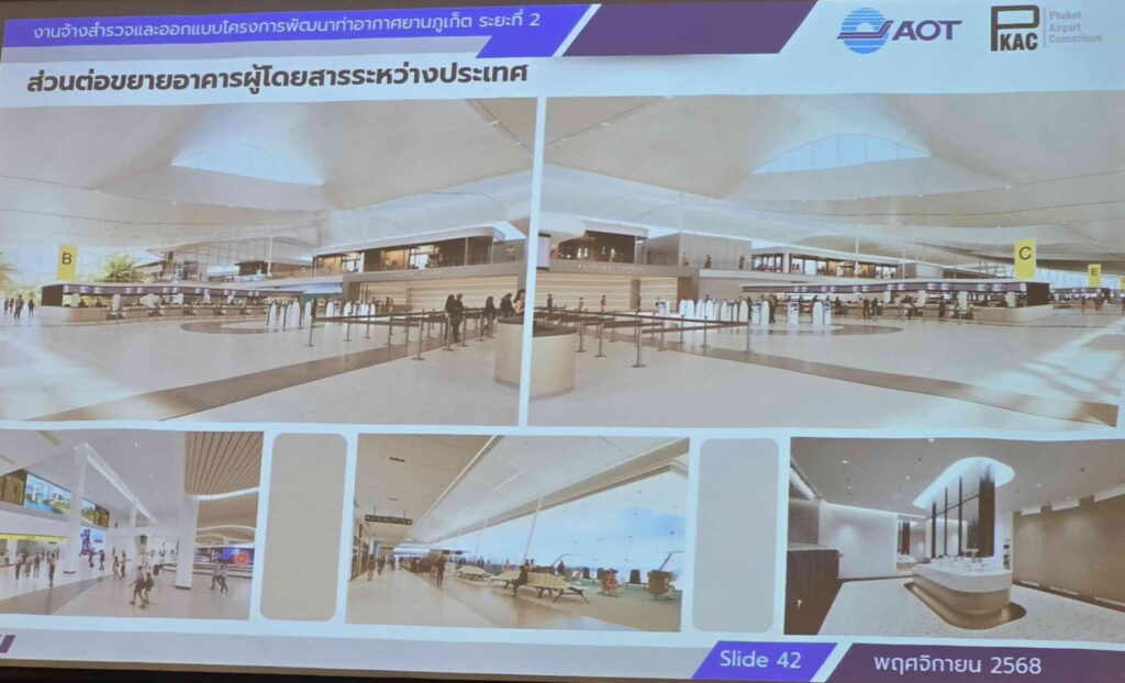 ทั้งนี้คาดว่าในไตรมาสที่ 2 ปี 2569 งานออกแบบจะแล้วเสร็จ  และได้ผู้รับเหมาปลายปี 2569 และคาดว่าจะสามารถเริ่มก่อสร้างได้ปี 2570 เป็นต้นไป โดยใช้เวลาก่อสร้างประมาณ 3 ปี  เมื่อโครงการพัฒนาท่าอากาศยานภูเก็ต ระยะที่ 2 ดำเนินการแล้วเสร็จ จะช่วยยกระดับประสบการณ์การเดินทางของผู้โดยสารให้สะดวกสบายมากยิ่งขึ้น ลดความแออัดภายในอาคารผู้โดยสาร และเพิ่มศักยภาพการให้บริการ จากเดิมที่รองรับผู้โดยสารได้ 12.5 ล้านคนต่อปี เป็นไม่น้อยกว่า 18 ล้านคนต่อปีรองรับปริมาณการจราจรทางอากาศที่เพิ่มขึ้น ซึ่งในการพัฒนาโครงการฯ ประกอบด้วย การออกแต่อขยายอาคารผู้โดยสารระหว่างประเทศ เพิ่มขีดความสามารถในการรองรับผู้โดยสารระหว่างประเทศได้ไม่น้อยกว่า 10.5 ล้านคนต่อปี การออกแบบสิ่งอำนวยความสะดวกที่ครอบคลุมสำหรับผู้ใช้บริการทุกคน