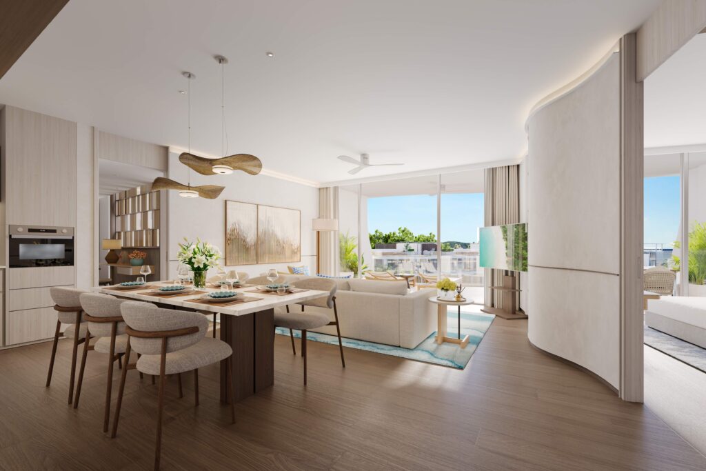 สำหรับผู้ที่มองหาที่พักอาศัยเพื่อการอยู่ถาวร ภายในโครงการยังมีอพาร์ตเมนต์หนึ่งห้องนอนจำนวนจำกัดที่ได้รับการออกแบบสำหรับการใช้ชีวิตที่เน้นเวลเนสและอยู่ใกล้ริมชายหาดโดยเฉพาะ ด้วยพื้นที่ใช้สอยประมาณ 57-58ตารางเมตร ที่พักอาศัยเหล่านี้ผสานแนวคิดแบบมินิมอลเข้ากับความเป็นธรรมชาติและโทนสีอ่อนโยนที่สร้างความรู้สึกผ่อนคลายราวกับเป็นสถานที่พักพิงส่วนตัว ด้วยทิศทางที่หันไปทางตะวันออก สามารถรับแสงแดดในยามเช้า ควบคู่ไปกับภูมิทัศน์อันสวยงามรอบด้าน แม้จะไม่ได้อยู่ภายใต้การบริหารจัดการของโรงแรม อพาร์ตเมนต์เหล่านี้สามารถสร้างรายได้เสริมจากการปล่อยเช่าผ่านโปรแกรม Banyan Living ซึ่งเป็นแพลตฟอร์มบริหารจัดการการปล่อยเช่าโดยเฉพาะของ บันยัน กรุ๊ป