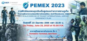 ด้วยท่าอากาศยานภูเก็ต จะดำเนินการฝึกซ้อมแผนฉุกเฉินเต็มรูปแบบ (Full-Scale Exercise : PEMEX 2023) ด้านการรักษาความปลอดภัยการบินพลเรือน กรณี การกราดยิงใน...