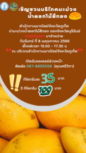 พาณิชย์จังหวัดภูเก็ตขอเชิญซื้อมะม่วงน้ำดอกไม้สีทอง