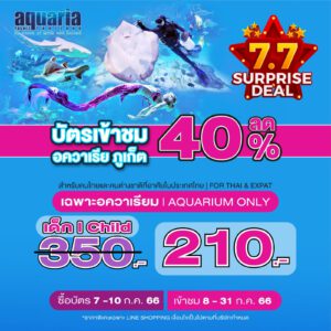 อควาเรียภูเก็ต จัดหนัก แบบดุดันไม่เกรงใจใคร รับไปเลย 40% แบบจุกๆ เริ่มจำหน่ายบัตรตั้งแต่วันที่ 7 – 10 กรกฎาคม 2566 ใช้บัตรได้ถึง 31 ก.ค ใน line@ เท่าน...