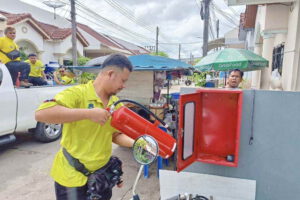 เจ้าหน้าที่งานป้องกันฯ ทต.วิชิต ลงพื้นที่ตรวจสภาพถังดับเพลิงประจำจุดต่างๆ