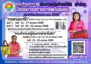 ด้วยกองสวัสดิการสังคม เทศบาลตำบลวิชิต จะเปิดการอบรมการสร้างอาชีพในชุมชน ประจำปีงบประมาณ พ.ศ.2568 ทางเทศบาลตำบลวิชิต ขอเชิญชวนประชาชนในตำบลวิชิต เข้าร่...