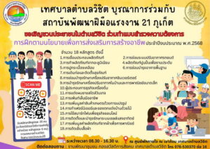 ด้วยทางเทศบาลตำบลวิชิต บูรณาการร่วมกับสถาบันพัฒนาฝีมือแรงงาน 21 ภูเก็ต ขอเชิญชวนประชาชนในตำบลวิชิต ร่วมทำแบบสำรวจความต้องการการฝึกตามนโยบายเพื่อการส่ง...