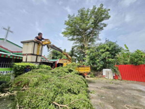 ทต.วิชิต ลงพื้นที่ขุดลอกรางระบายน้ำและตัดต้นไม้ ถนนเหมืองนาคา