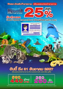 ส่วนลดที่ไม่มีมาก่อน เอาใจกันทุกกลุ่ม ไม่ว่าจะเป็นข้าราชการสังกัดอะไรก็ลดเช่นกัน 25% เพียงแสดงบัตรข้าราชการที่เคาเตอร์จำหน่ายบัตร (เฉพาะอควาเรียมเท่าน...